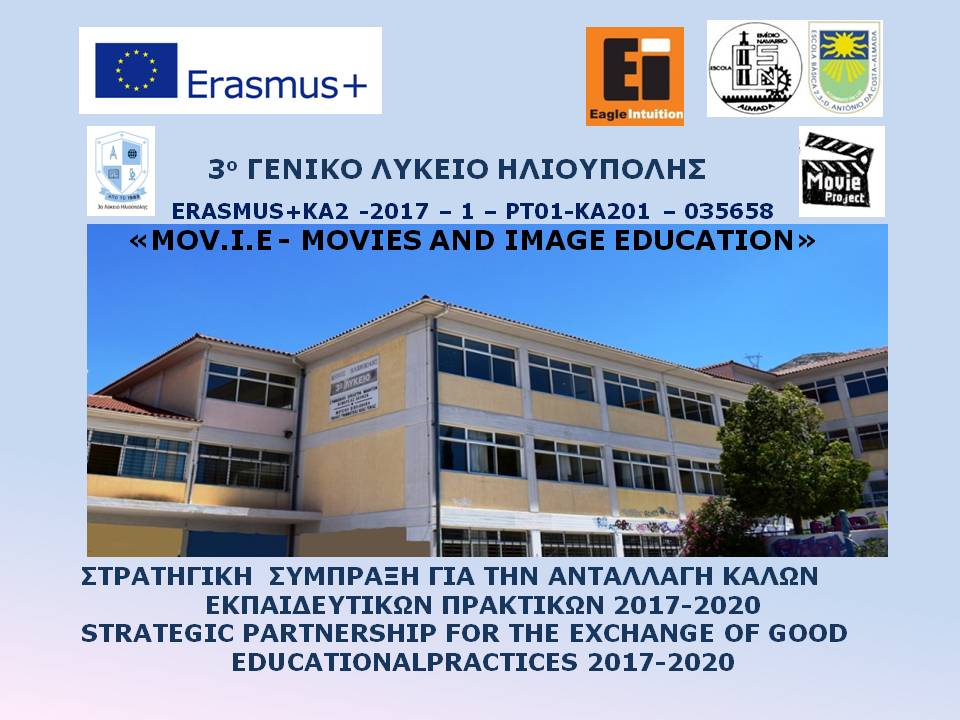 Το 3ο ΓΕΝΙΚΟ ΛΥΚΕΙΟ ΗΛΙΟΥΠΟΛΗΣ ΣΥΜΜΕΤΕΧΕΙ ΣΕ ΕΥΡΩΠΑΪΚΌ ΠΡΟΓΡΑΜΜΑ ERASMUS+ Στρατηγική Σύμπραξη ΚΑ201- 2017-2020 Τίτλος: MOV.I.E – MOVIES AND IMAGE EDUCATION