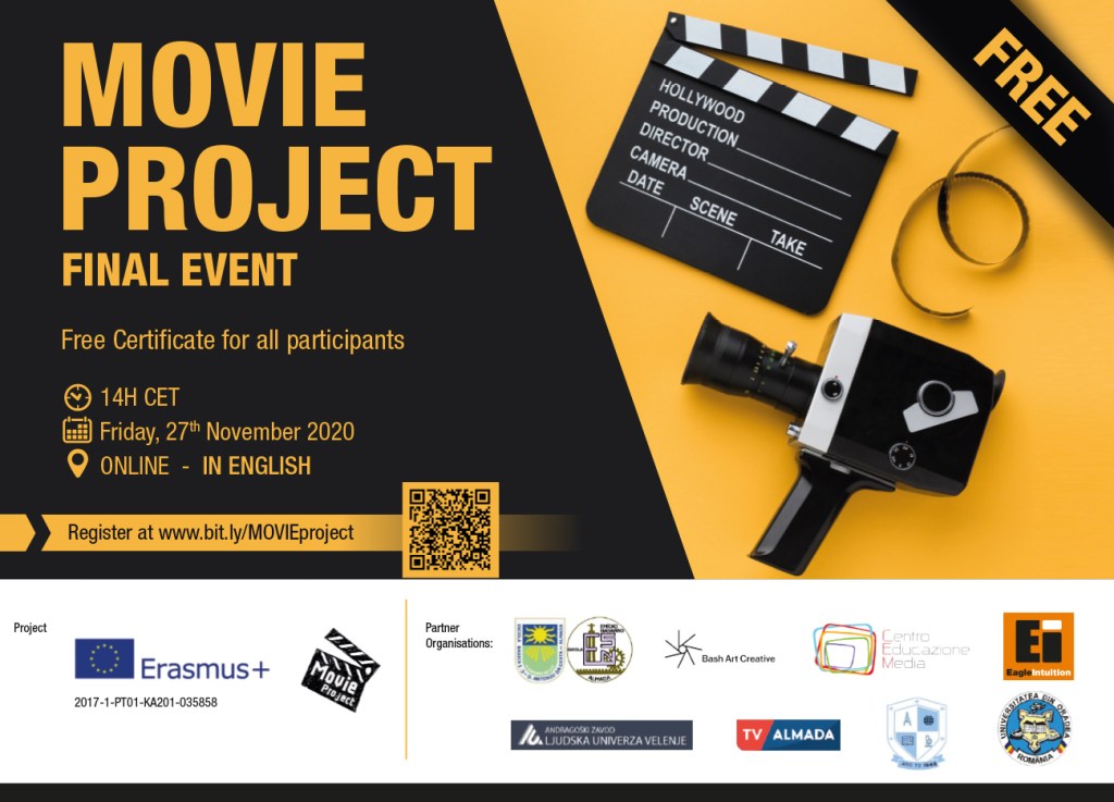 Νοέμβριος: Την Παρασκευή 27/11/2020 και ώρα 15:00-18:00 διεθνής παρουσίαση του προγράμματος ERASMUS+ MOVIE PROJECT την οποία μπορείτε να παρακολουθήσετε στον σύνδεσμο YouTube.