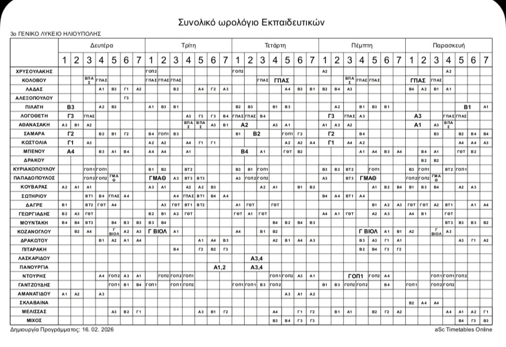 Ωρολόγιο πρόγραμμα από 16/2/2026
