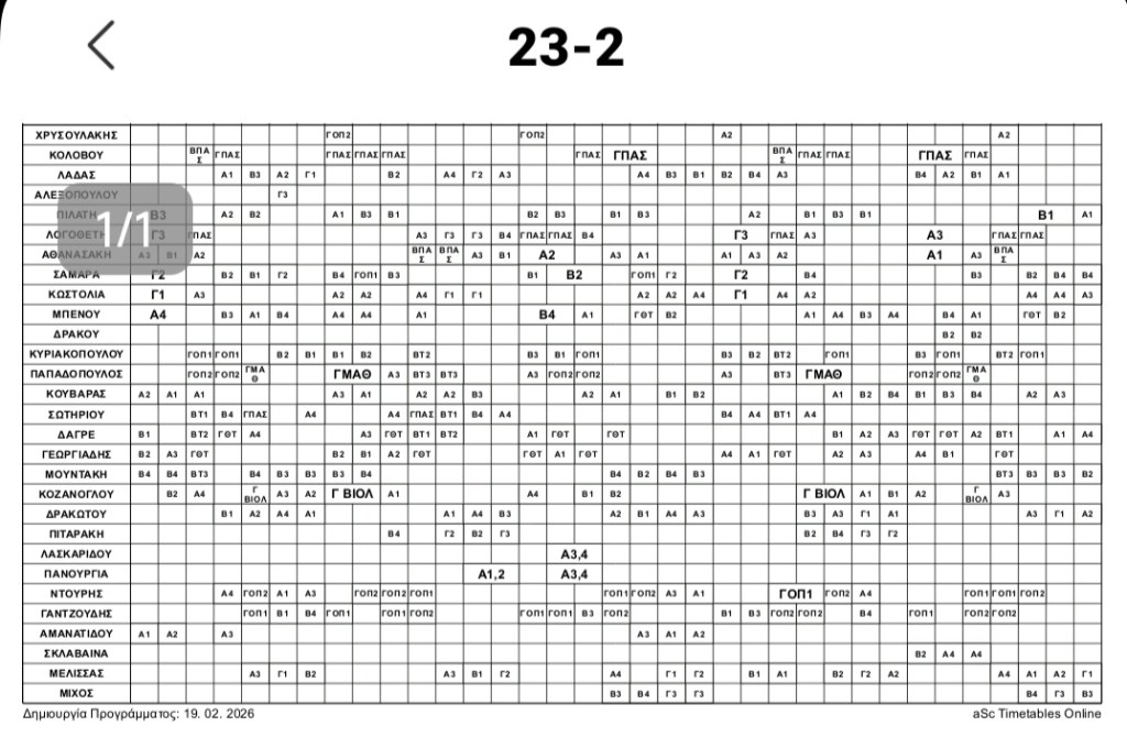 Ωρολόγιο πρόγραμμα από 23/2/2026