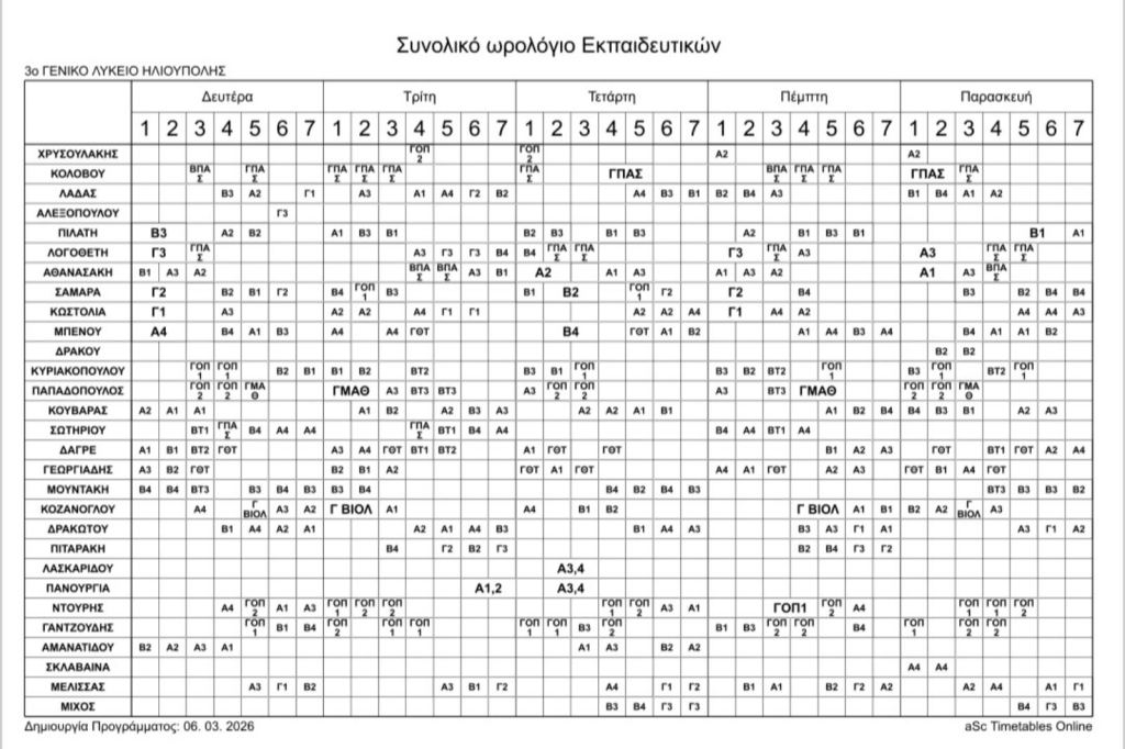 Ωρολόγιο πρόγραμμα απο 9 / 3/ 2026