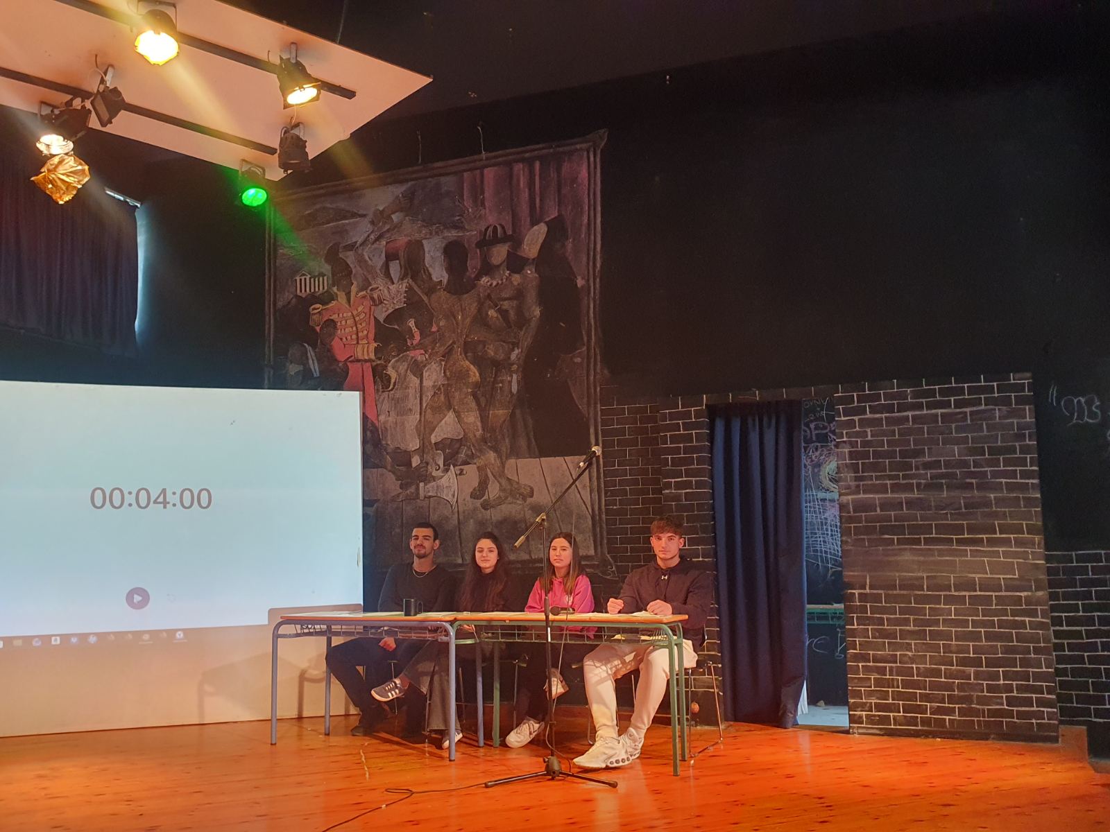 Την Πέμπτη, 23 Απριλίου 2026, ολοκληρώθηκε με τον τελικό γύρο η 2η φάση του αγώνα επιχειρηματολογίας (αντιλογίας). Η συζήτηση επικεντρώθηκε σε δύο θέματα που αφορούν άμεσα τους νέους και και τη σχολική ζωή: τον ρόλο των μαθητικών κοινοτήτων και την τεχνητή νοημοσύνη. Οι δύο ομάδες, με μεικτή σύνθεση από μαθητές και των τριών τάξεων, συνεργάστηκαν δημιουργικά και ανέδειξαν ώριμο, τεκμηριωμένο λόγο.